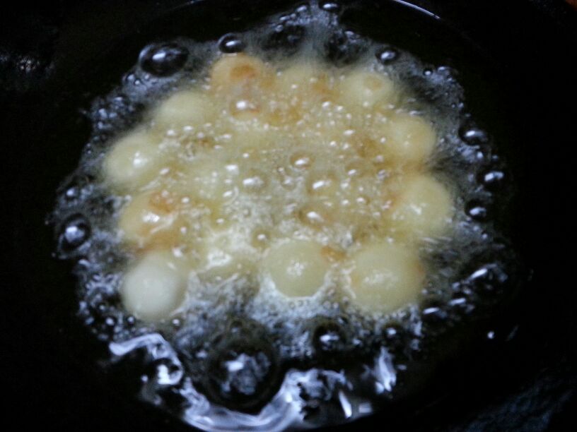 6. Heat oil in the pan and add the Jamun to it and fry it until they turn golden brown. ( Do the whole process in low flame to avoid uncooked Jamun in the middle )