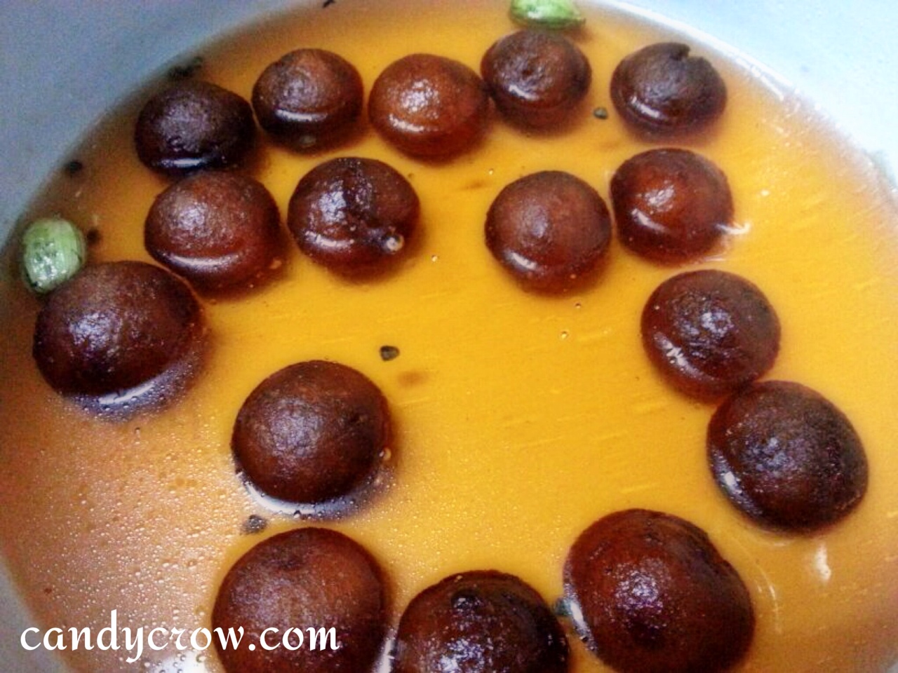 7. Add the Jamun to the sugar syrup, cover it and allow it to be soaked in it for 2 hours.