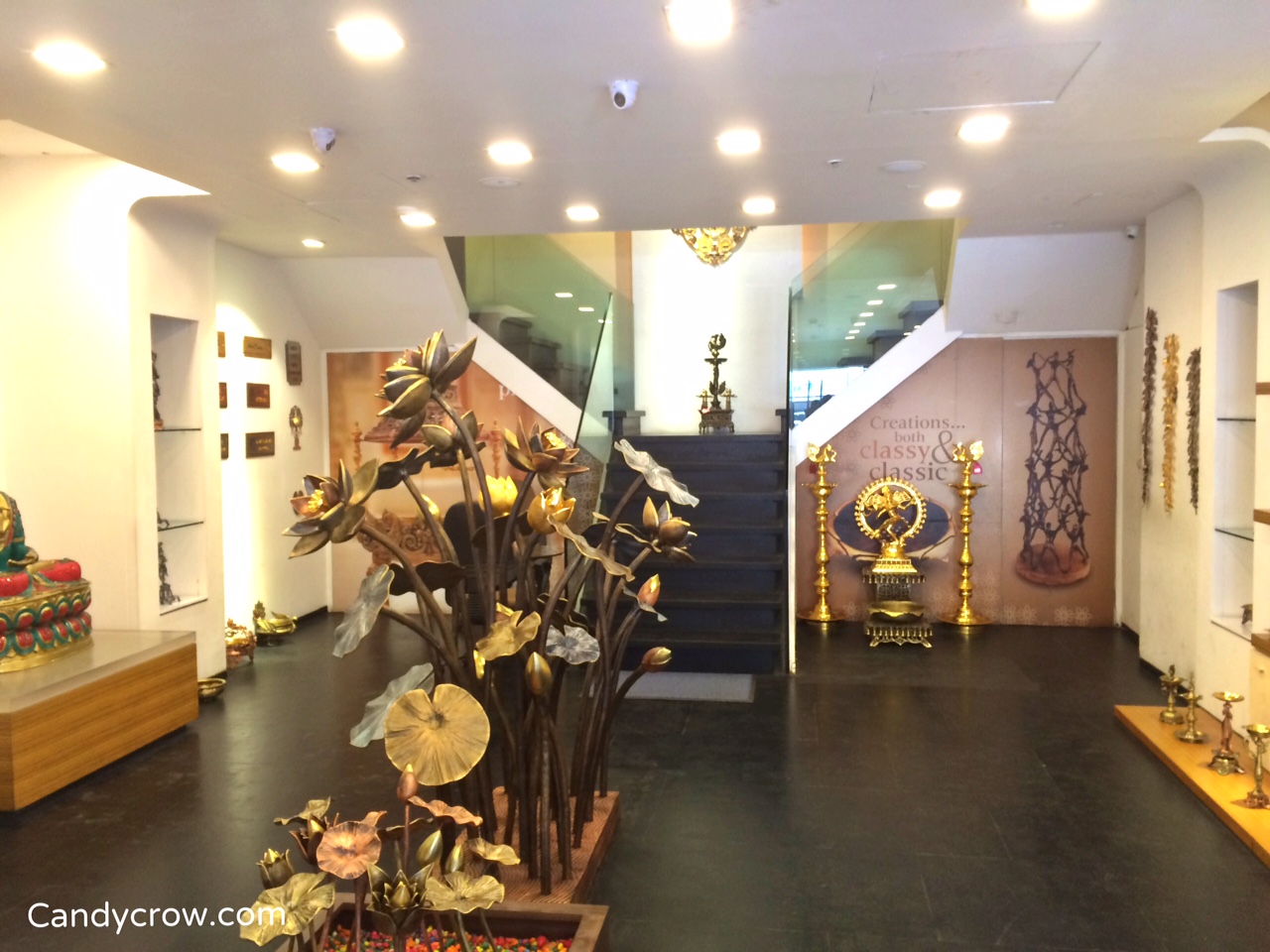 This showroom has a great focus on “Samarpan” which is its Pooja room concept. With a pure touch of class and elegance this makes sure to make your home shine bright by making available gold coated pooja rooms. The have multiple options for idols like Ayappan, Jesus Mary, Krishna Radha, Lakshmi, Mahavir, Murugar, Buddha etc. range starting from 3,600 INR and so on. They have beautiful home/wall decoratives made of bronze and antique finish which look very classy. All of these products are handmade