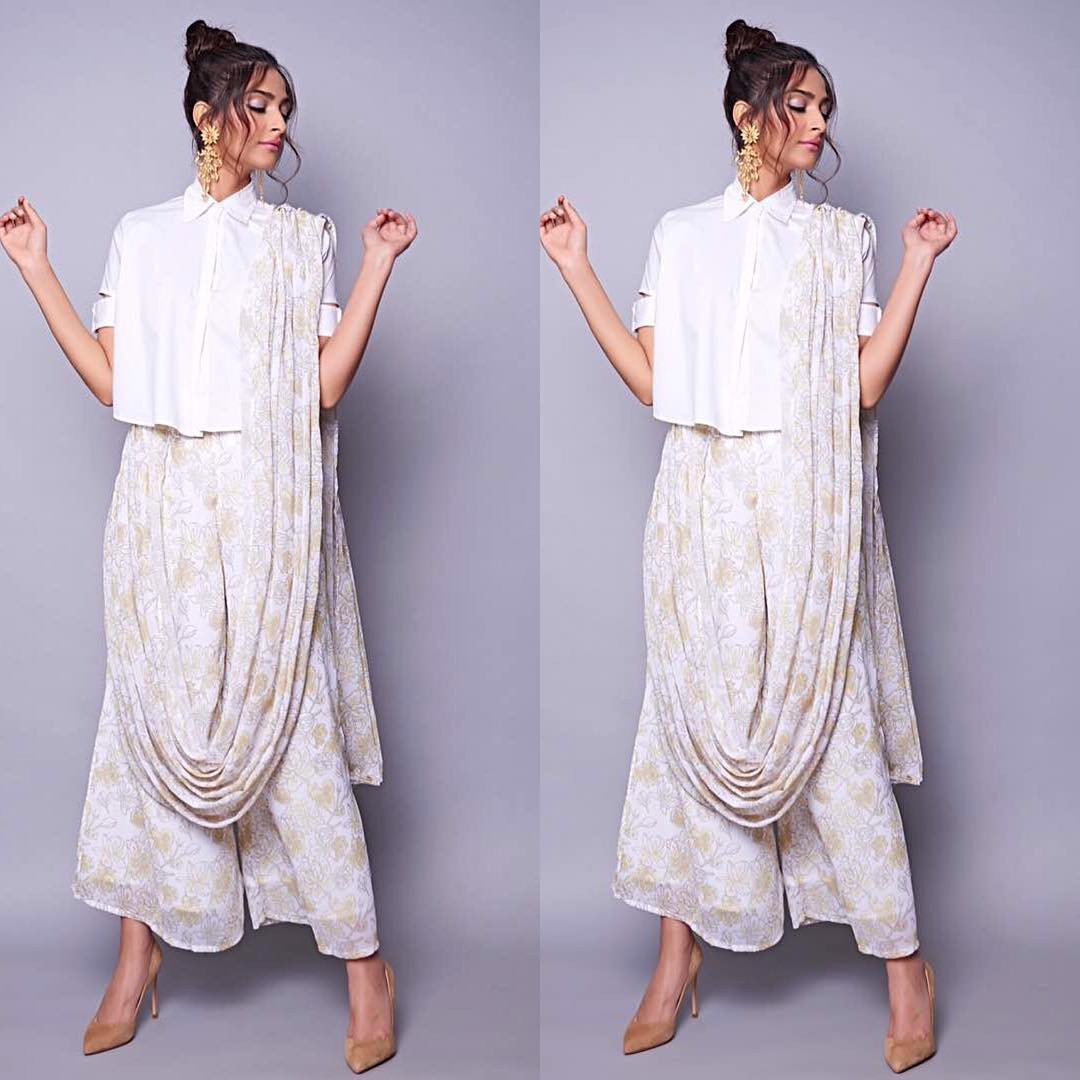 3. Dhoti Saree - The next in thing is the dhoti saree. Yes it is! Dhoti might be an old and a traditional form of attire for gents. But since the year 2018 began, it has seen many Bollywood designers and celebs drooling over this style and form of saree. This is a draped dress/saree that otherwise exists out of the bounds of cultural norms. It is a nonconformist style that stands out in thousands and you cannot just second about it. A dhoti saree is a loosely draped and pre stitched saree that appears to be just like “dhoti” in a new avatar. Team it up with a crisp shirt or a long kurta. Tank tops can even be worn with it.